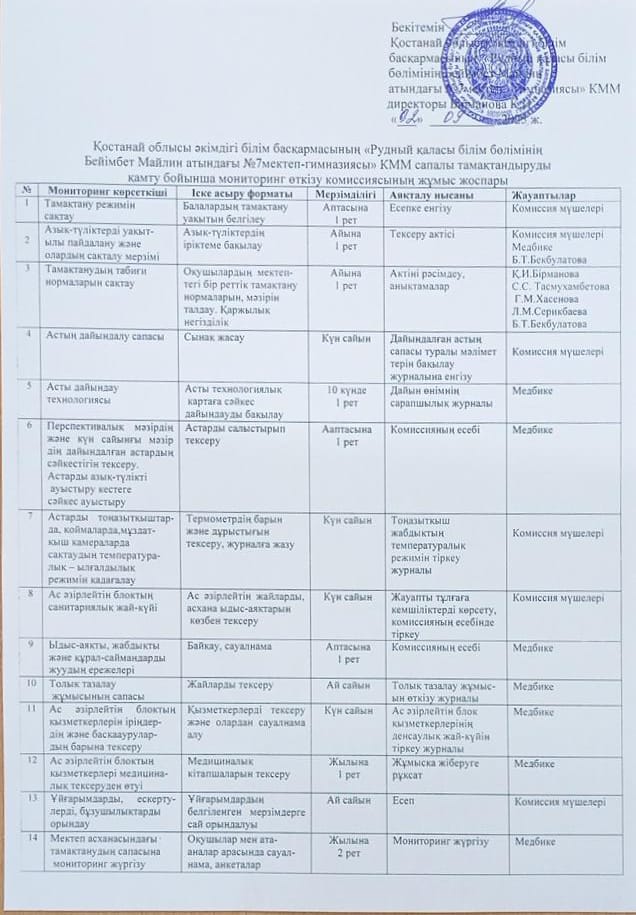 | 3 | Тамақтану сапасына мониторинг жүргізу актісі |