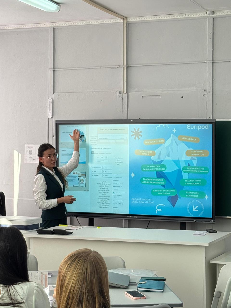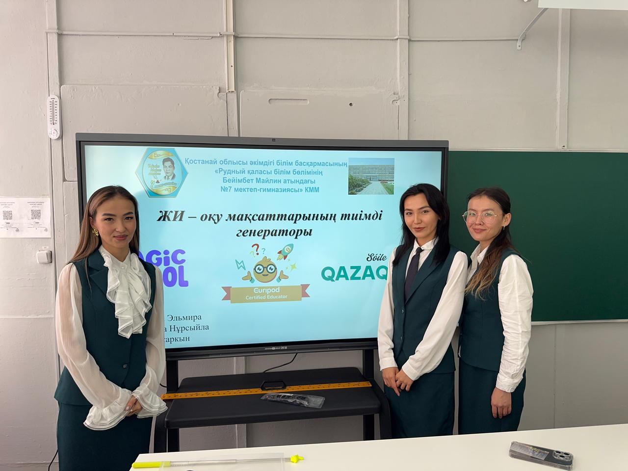 Біздің жас ұстаздарымыз - Маратова А., Абдикаримова Э., Мейримханова Н. - бұл шарада «ЖИ - оқу мақсаттарының тиімді генераторы» тақырыбында тәжірибелерімен бөлісіп, әріптестерінің ойларын тыңдады.